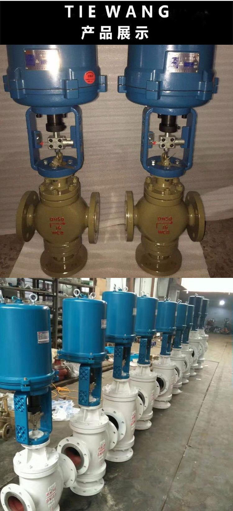 ZAZQ、ZAZX电动三通调节阀(ZAZQ电动三通合流调节阀、ZAZX电动三通分流调节阀)由3810L型或PSL系列直行程电子式电动执行机构和直通双座阀组成。内含饲服功能,接受统一的 4-20mA或1-5V·DC的标准信号,将电流信号转变成相对应的直线位移,自动地控制调节阀开度,达到对管道内流体的压力、流量、温度、液位等工艺参数的连续调节。座阀有上、下两个阀芯球,流体作用在上、下阀芯上的推力,其方向相反而大小接近,不平衡力很小,允许压差大,额定流量系数比同口径的单座阀大,但该阀的泄漏较单座阀大。适用于对泄露量要求不严格,阀前后压差较大的干净介质场合。