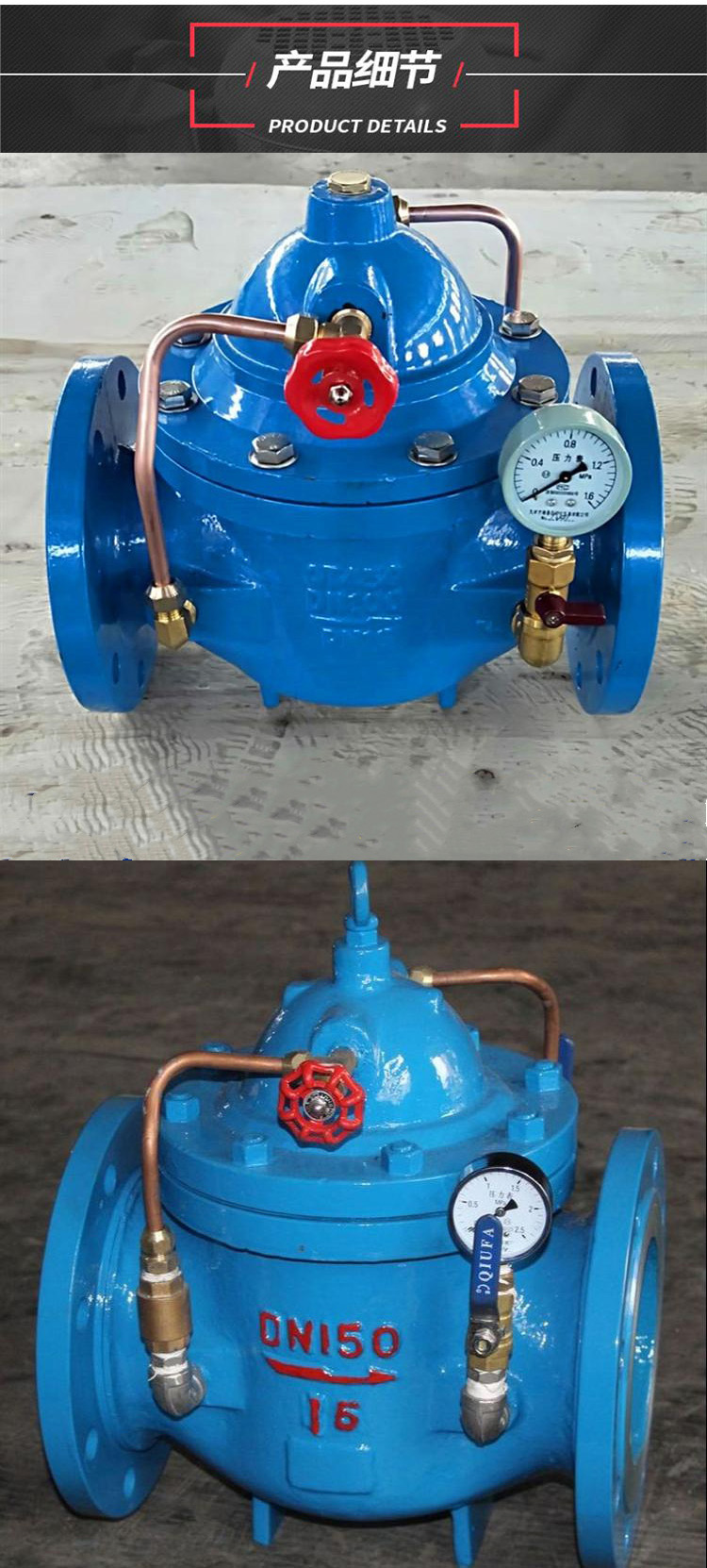 4、利用水力自力控制,不需要其它装置和能源,保养简便,开启及缓闭平稳。